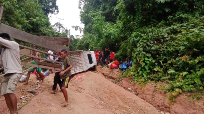 “Saya juga ikut di mobil itu mau ke Bobong. Karena jalan rusak parah, mobil jadi oleng dan akhirnya terbalik,” ujarnya.